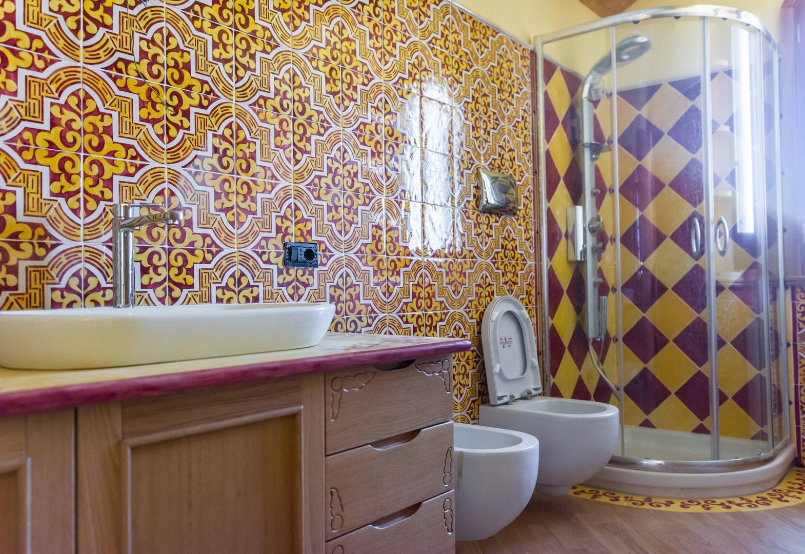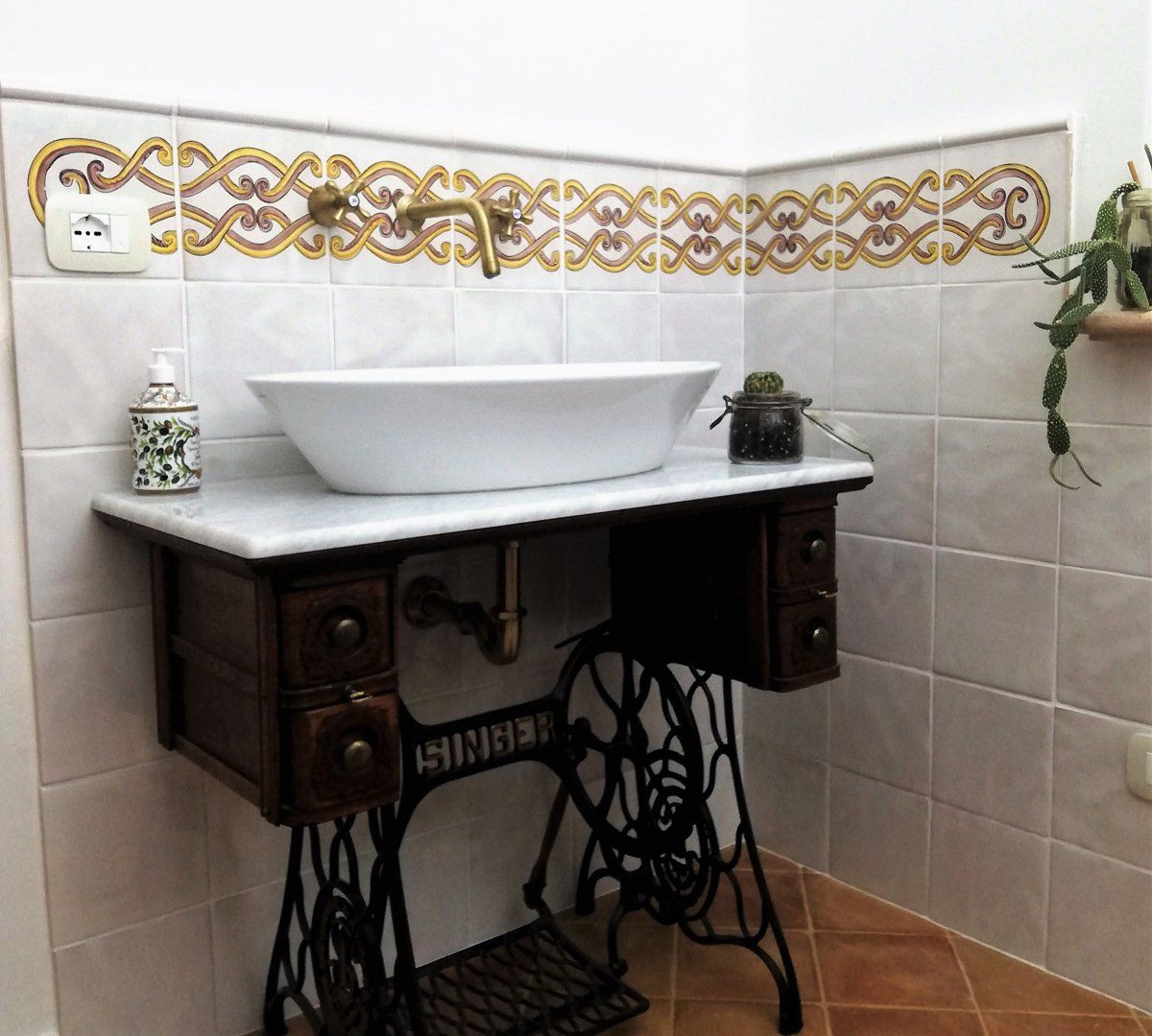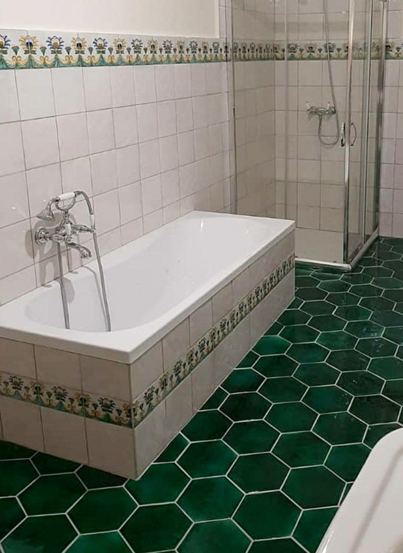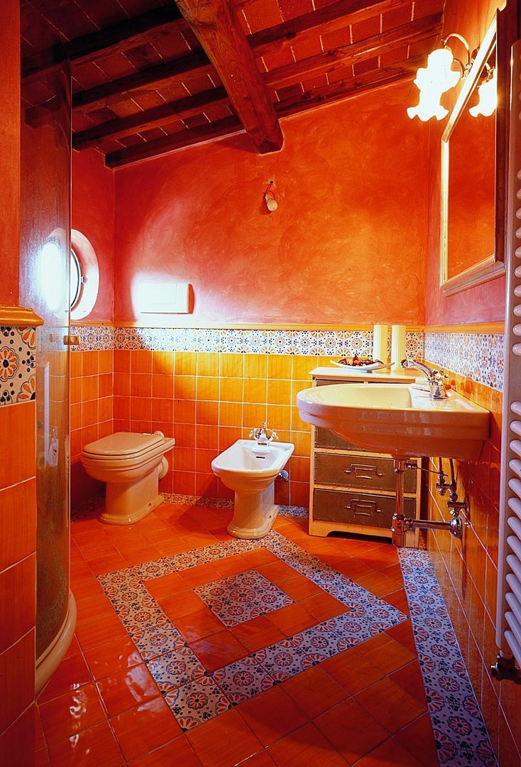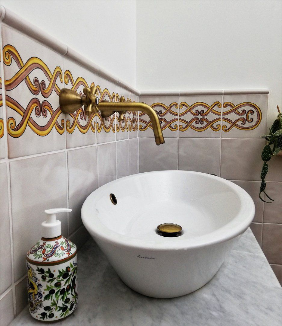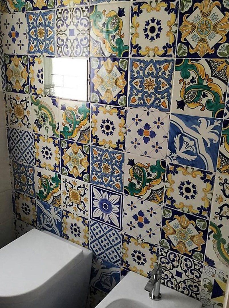 Crea il tuo bagno, con il cotto siciliano La Fauci smaltato e decorato a mano.
