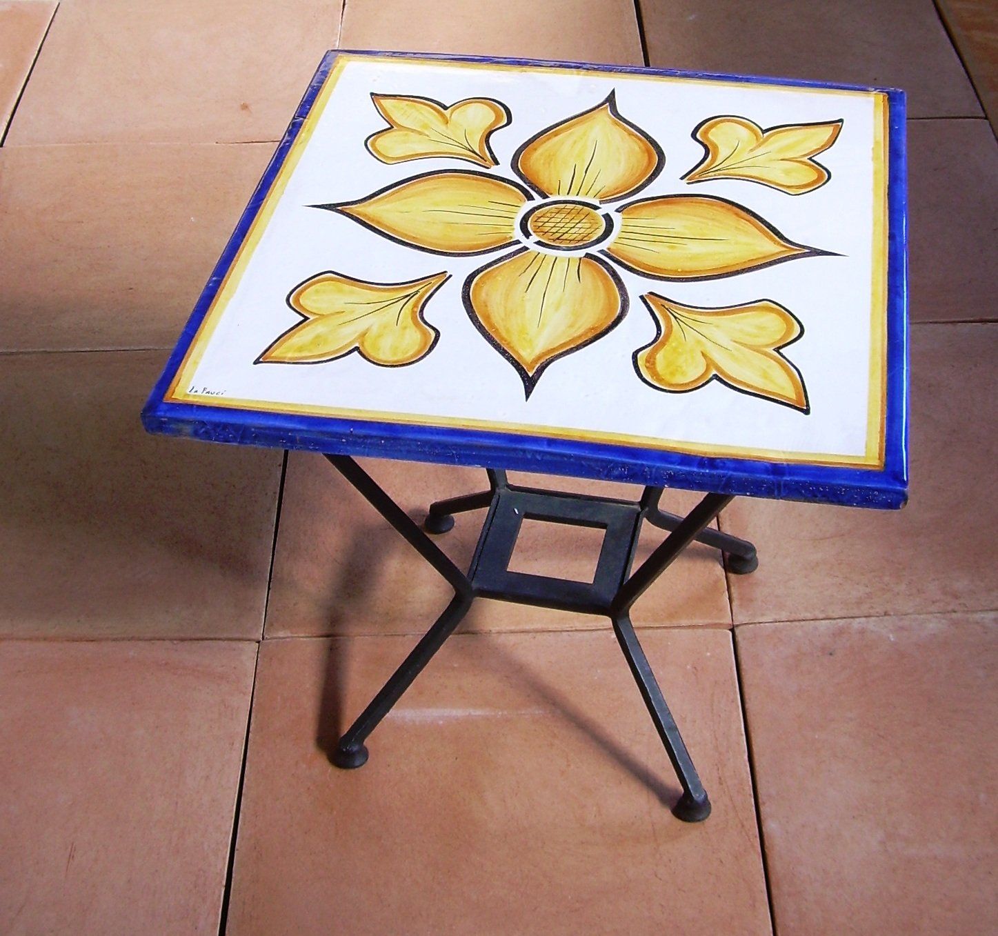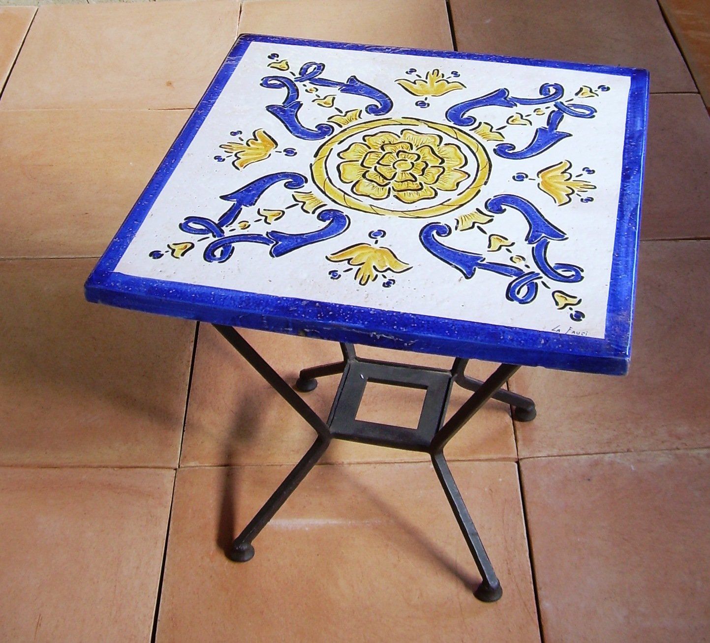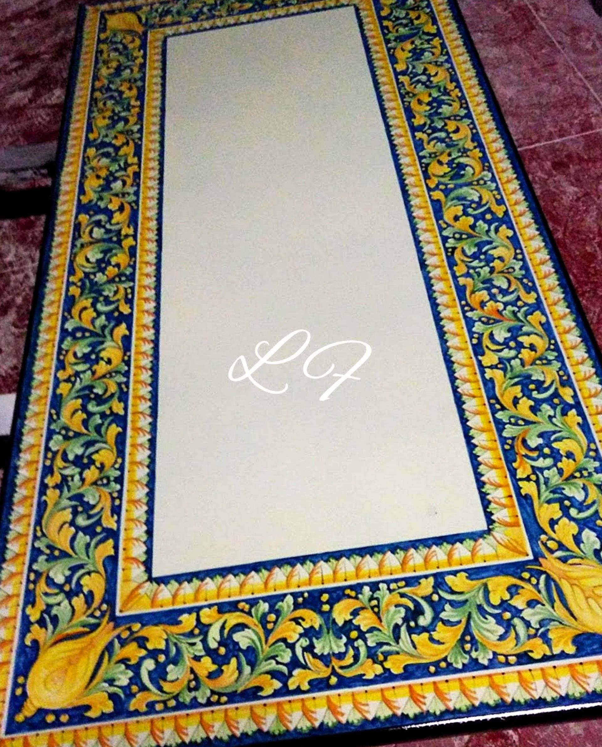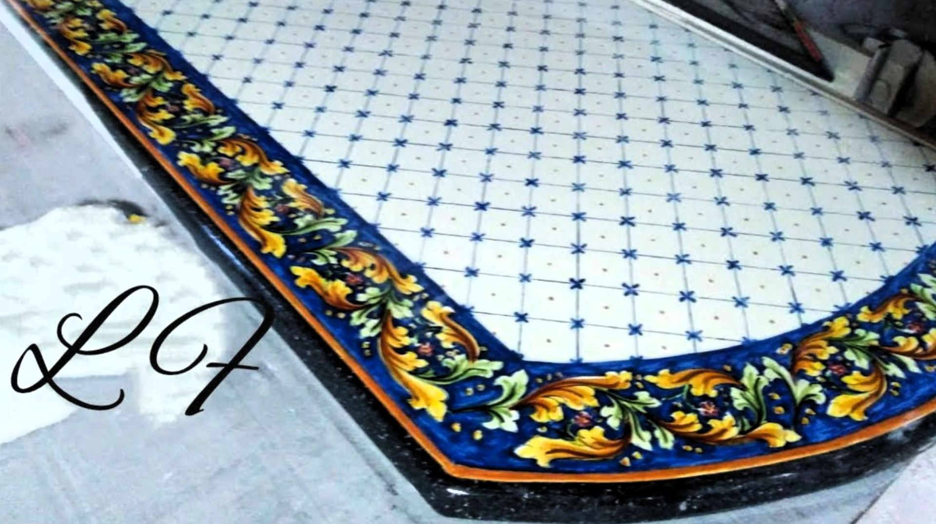 La pietra lavica , smaltata e decorata per dar vita ai tavoli con caratteristiche uniche e ottima resistenza.