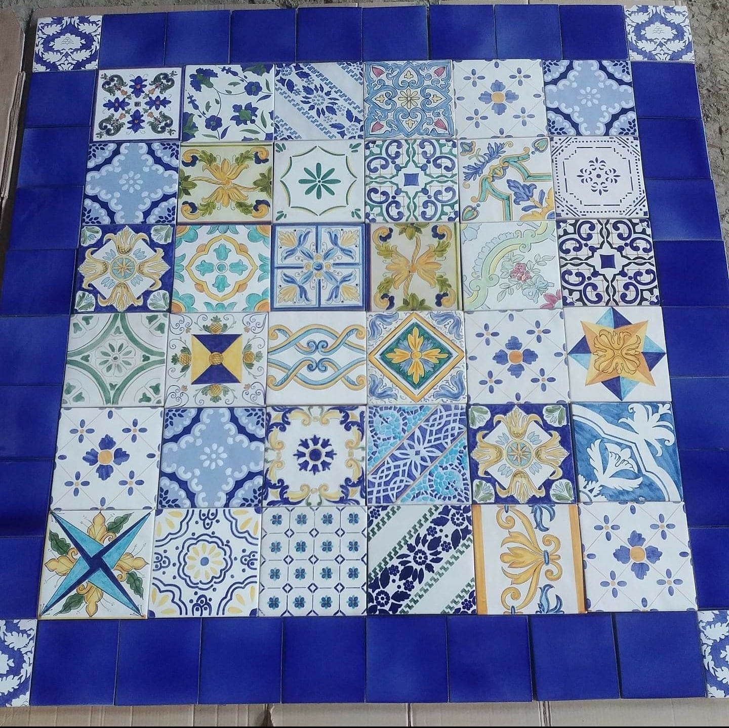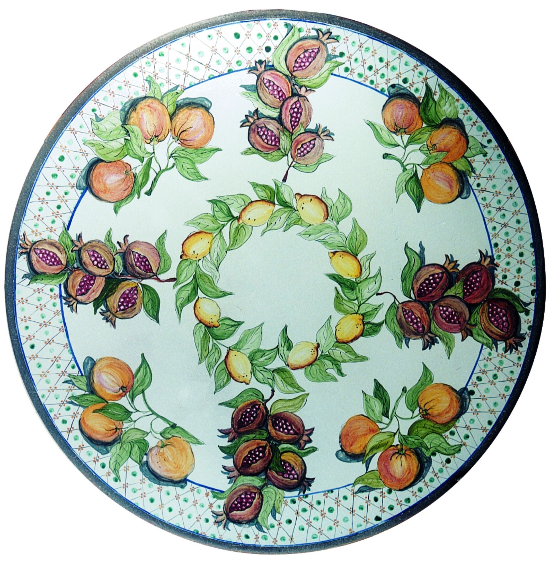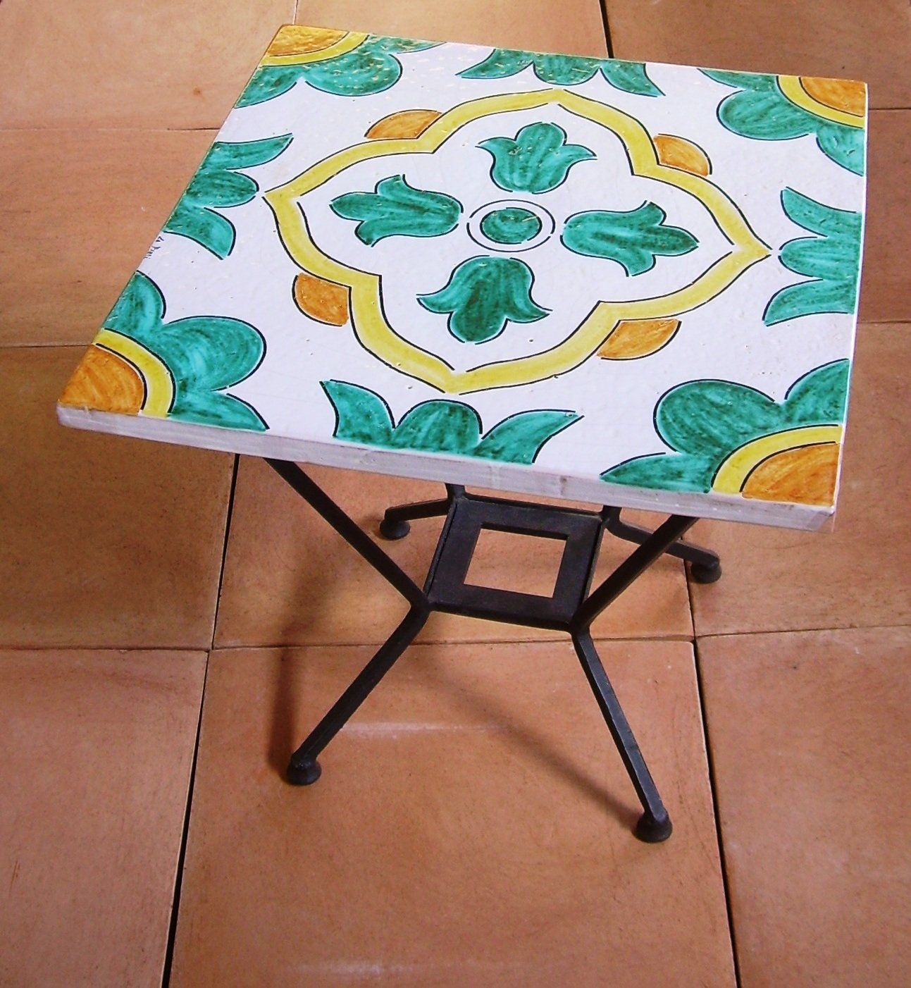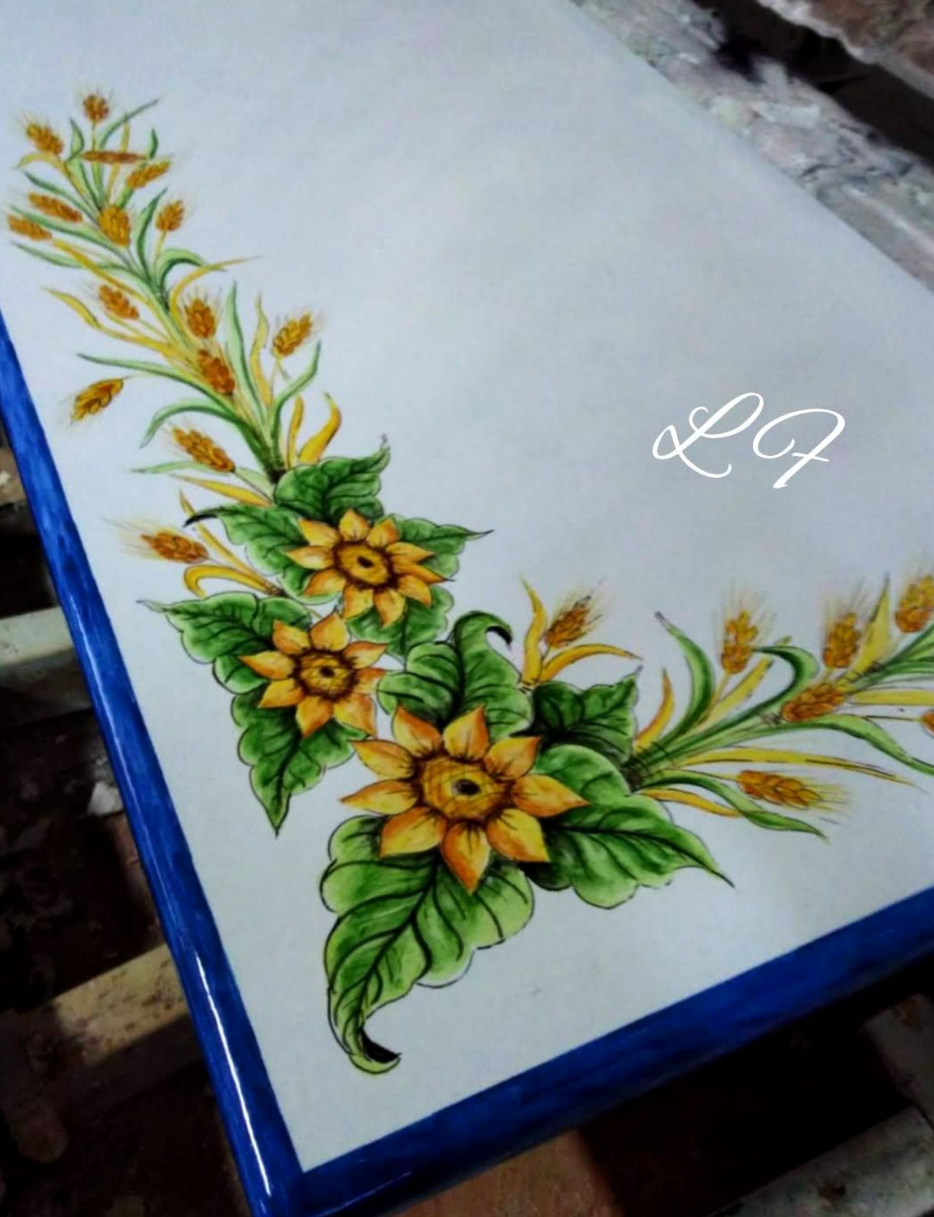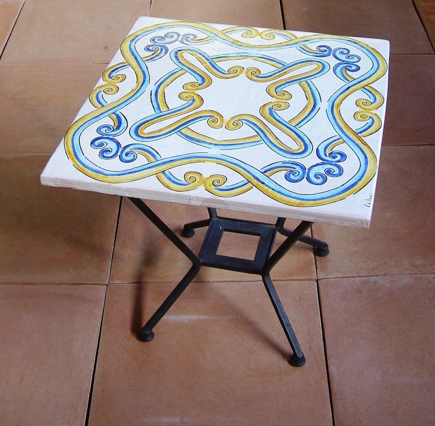 La pietra lavica , smaltata e decorata per dar vita ai tavoli con caratteristiche uniche e ottima resistenza.