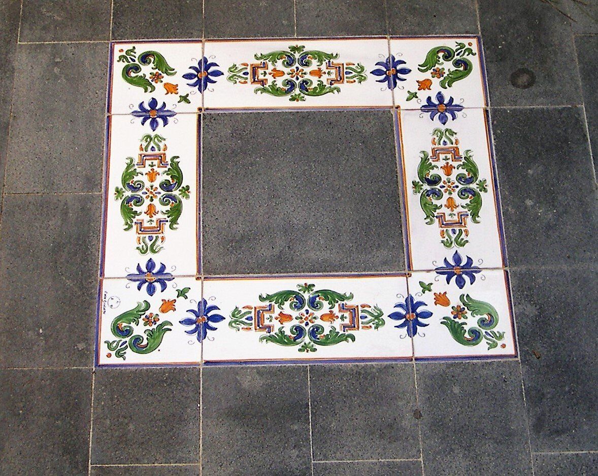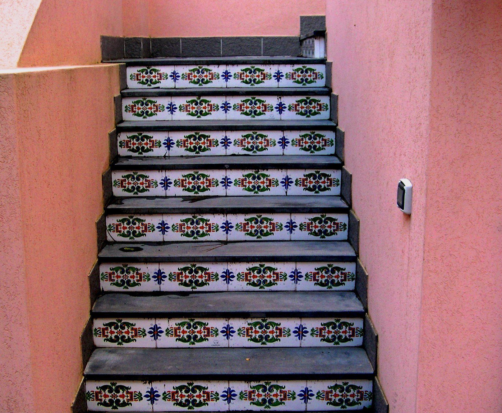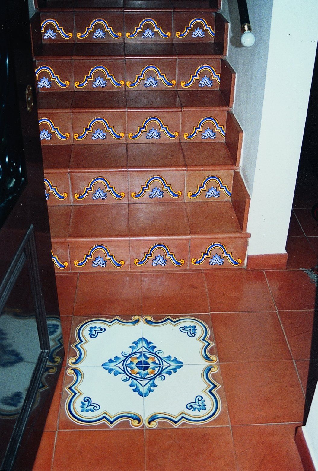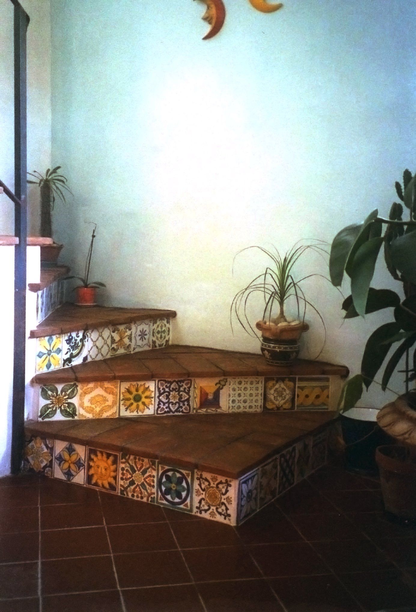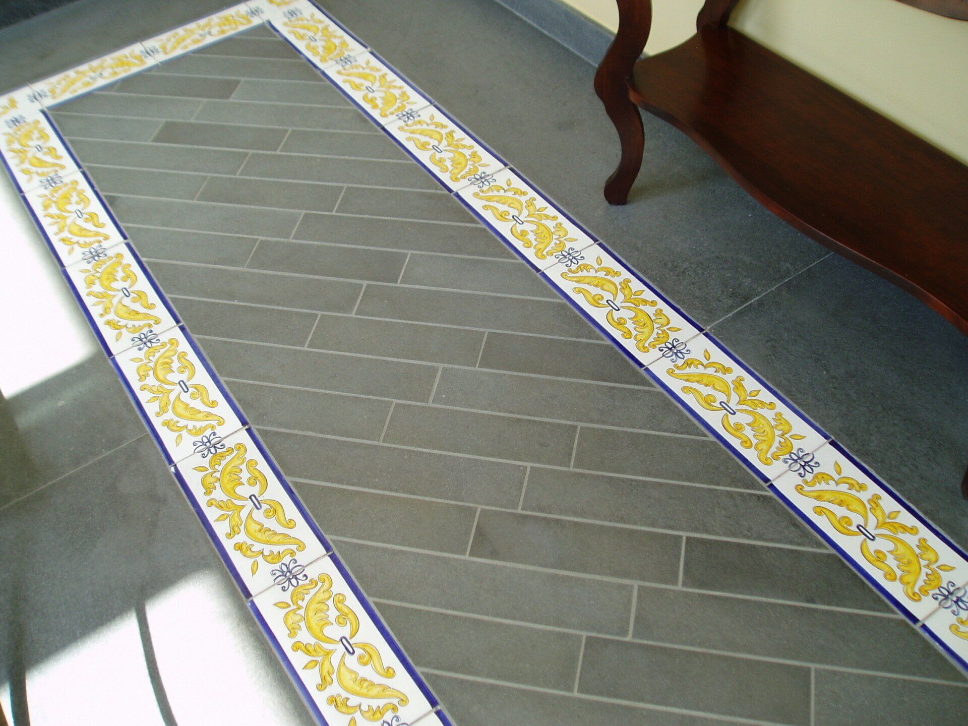 Protagonista dell'intero ambiente la scala con alzate in maiolica che trasformano le rampe in suggestive opere d'arte.